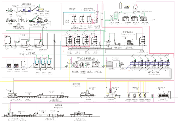 生產(chǎn)線示意圖包含生產(chǎn)線的各個生產(chǎn)環(huán)節(jié),清晰標(biāo)注在圖紙上,更直觀看出各個生產(chǎn)線環(huán)節(jié)及生產(chǎn)所需的設(shè)備。生產(chǎn)線示意圖包含了前期處理設(shè)備,cip清洗系統(tǒng)、公共系統(tǒng)、提取系統(tǒng)、過濾系統(tǒng)、殺菌系統(tǒng)、灌裝系統(tǒng)、后道包裝系統(tǒng),整條生產(chǎn)線更加人性化設(shè)計,設(shè)備全部自動化,減少了人工投入,同時更好的增加了產(chǎn)品生產(chǎn)效益。
