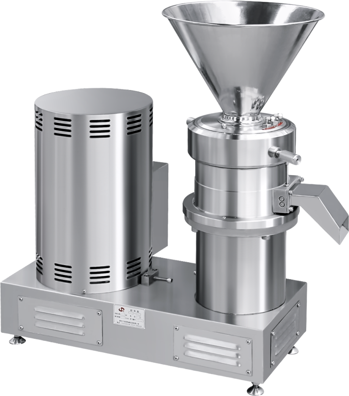 膠體磨是由電動機通過皮帶傳動帶動轉(zhuǎn)齒(或稱為轉(zhuǎn)子)與相配的定齒(或稱為定子)作相對的高速旋轉(zhuǎn),其中一個高速旋轉(zhuǎn),另一個靜止,被加工物料通過本身的重量或外部壓力(可由泵產(chǎn)生)加壓產(chǎn)生向下的螺旋沖擊力,透過定、轉(zhuǎn)齒之間的間隙(間隙可調(diào))時受到強大的剪切力、摩擦力、高頻振動、高速旋渦等物理作用,使物料被有效地乳化、分散、均質(zhì)和粉碎,達到物料超細粉碎及乳化的效果。破碎室設有三道磨碎區(qū),一級為粗磨碎區(qū),二級為細磨碎區(qū),三級為超微磨碎區(qū),通過調(diào)整轉(zhuǎn)子的間隙,能緊湊運轉(zhuǎn),具有平穩(wěn)、噪音小、耐腐蝕、易清洗、維修方便等特點。目前是國內(nèi)濕法粉碎理想的設備。